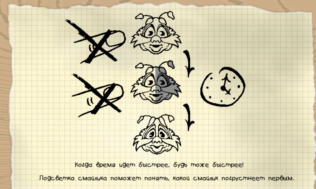 Задумка заключается в том, что мы кликаем на мордочки-смайлики, и от этого они становятся веселее - те, на которые нажимаешь. Пришла в голову мне эта идея во время прочтения одного форума, в котором один пользователь просил, уже не помню дословно, а что-то вроде "сделайте игру, чтобы просто надо нажать на кого-нибудь".