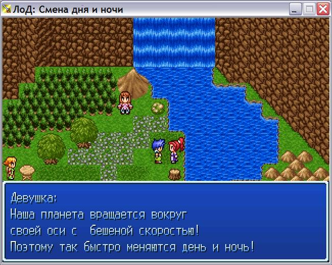 Напоследок ложка дёгтя: перед тем, как вставлять в игру такую систему как смена дня и ночи, хорошенько подумайте - а надо ли оно? Дело в том, что в определенных случаях эта "фишка" совсем не оправдана и может даже изрядно испортить игру. Не верите? А вот в "Дряньке" были неоднократные случаи, когда люди жаловались на то, что надоело, как везде темно, а ночью магазины закрыты, ничего не купить, а гостиницу не найти... Так что думайте сами, решайте сами. А как это делать, теперь вы знаете!