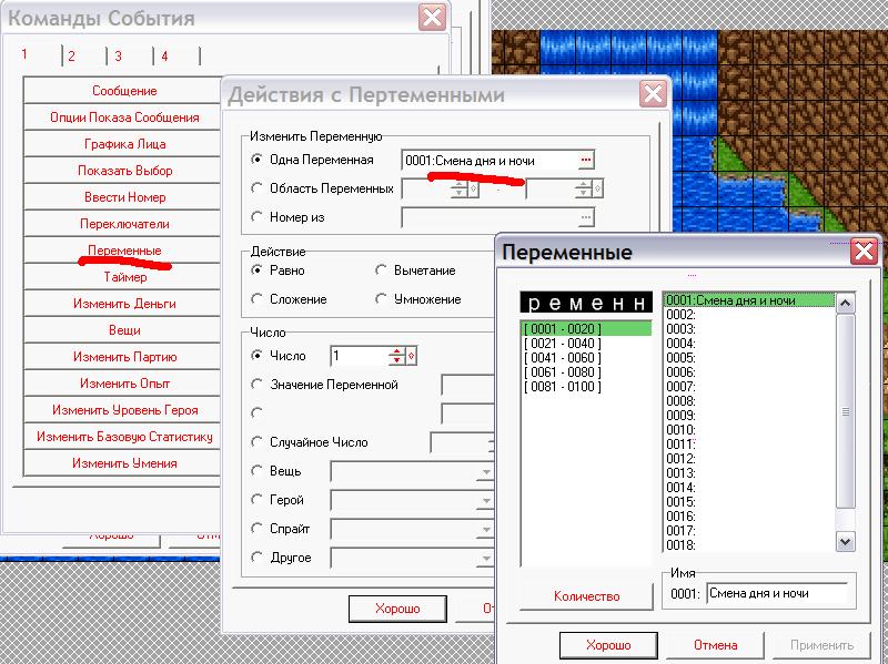 Таким образом, данная конструкция будет работать в цикле, меняя последовательно значения переменной «0001: Смена дня и ночи»